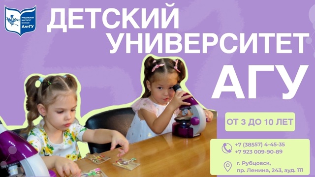 Рубцовский институт (филиал) АлтГУ приглашает детей от 3 до 10 лет в Детский университет!