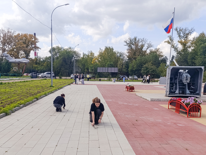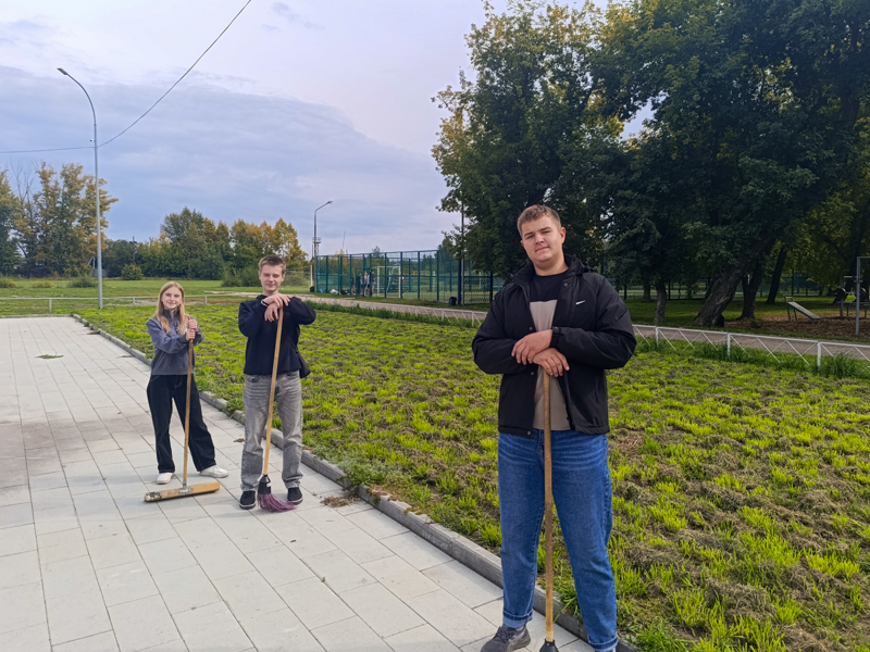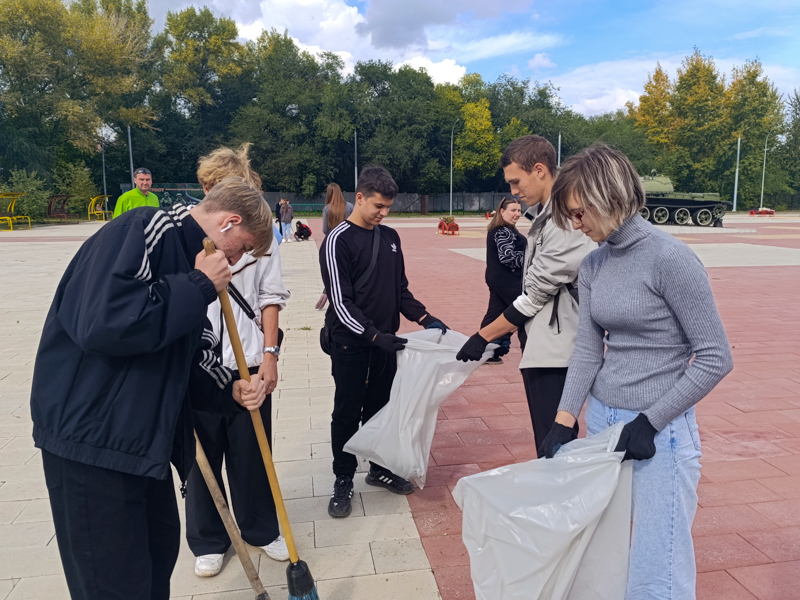 Накануне Дня города студенты группы 1257С9-1,2 вместе со своим куратором Мозер Ксенией Олеговной помогли МБУ ДО «Спортивная школа «Юбилейный» по благоустройству парка «Патриот».